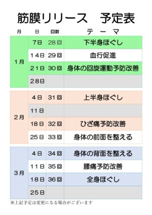 筋膜リリース開催テーマ(1~3月)